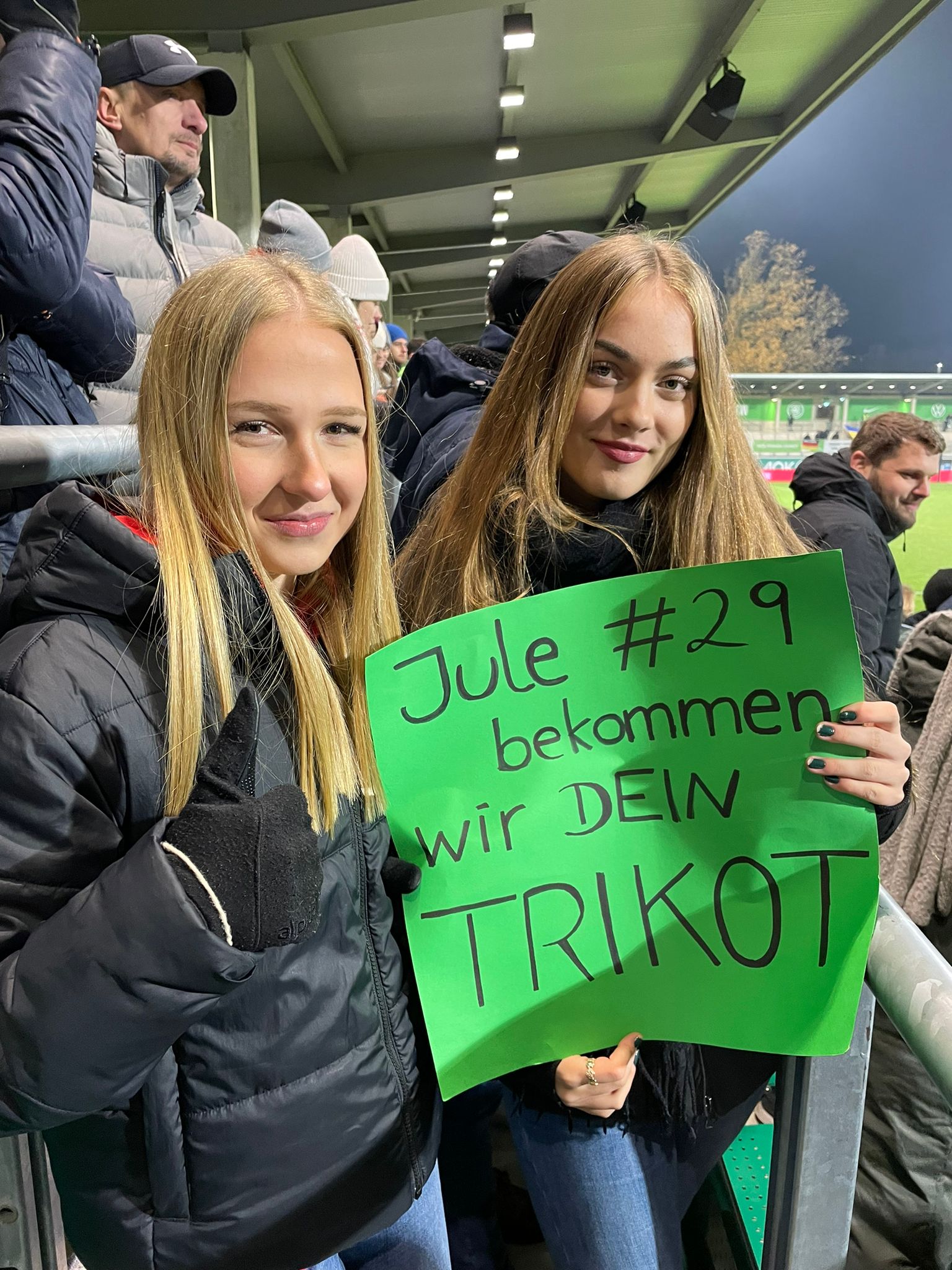 Der eigentliche Höhepunkt stand aber erst nach Abpfiff auf dem Programm. Nachdem sie von den Mädels minutenlang lautstark beim Auslaufen gefeiert wurde, trat Jule Brand unter tosendem Applaus ihren Weg zu uns an. Gekrönt wurde der Besuch des Shootingstars durch ein Selfie mit der ganzen Mannschaft. Mit diesen tollen Eindrücken verabschiedet sich das Team der B Juniorinnen in die wohlverdiente, aber kurze Winterpause. Denn Mitte Januar geht's dann schon wieder bei der nächsten Runde beim Cup der Region Hannover weiter.