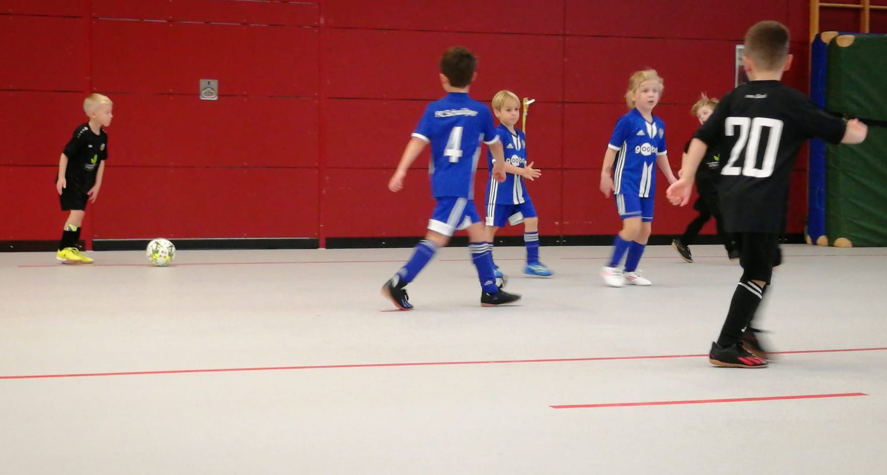 Unsere G1 mit Spielern des Jahrgangs 2018 startete stark und mit klaren Siegen in den ersten Spielen. Auch mit dem deutlich kleineren Feld und dem schnellen Hallenboden kamen wir nach kurzer Eingewöhnung gut klar. Es folgte eine knappe Partie gegen MTV Gifhorn, in der die Jungs zunächst einen 1:2 Rückstand ausgleichen und sich am Ende dank einer starken Leistung mit einem 4:2-Sieg belohnen konnten.