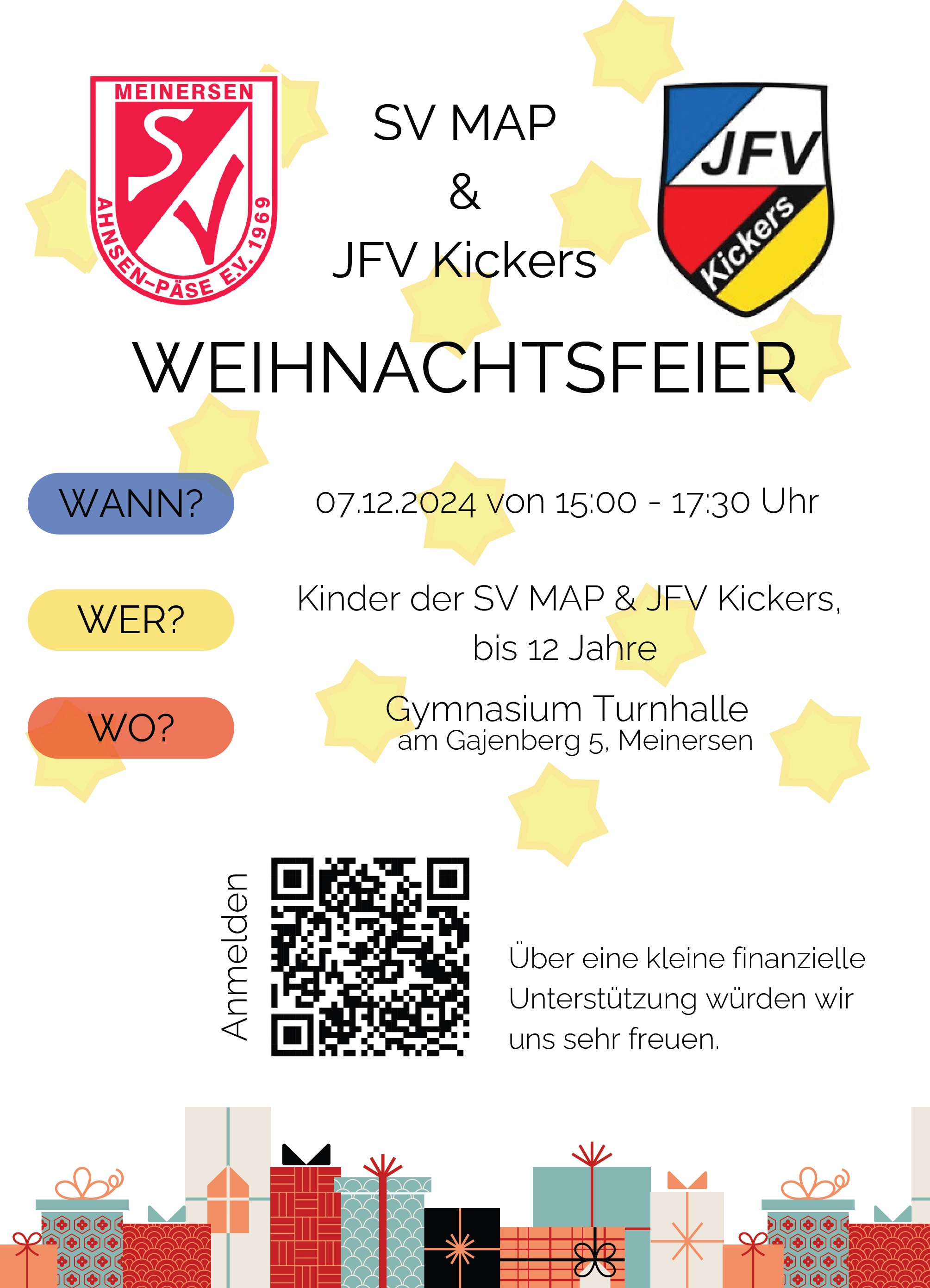 Deshalb gibt es auch in diesem Jahr eine große Weihnachtsfeier für die Kinder der SV MAP und JFV Kickers.