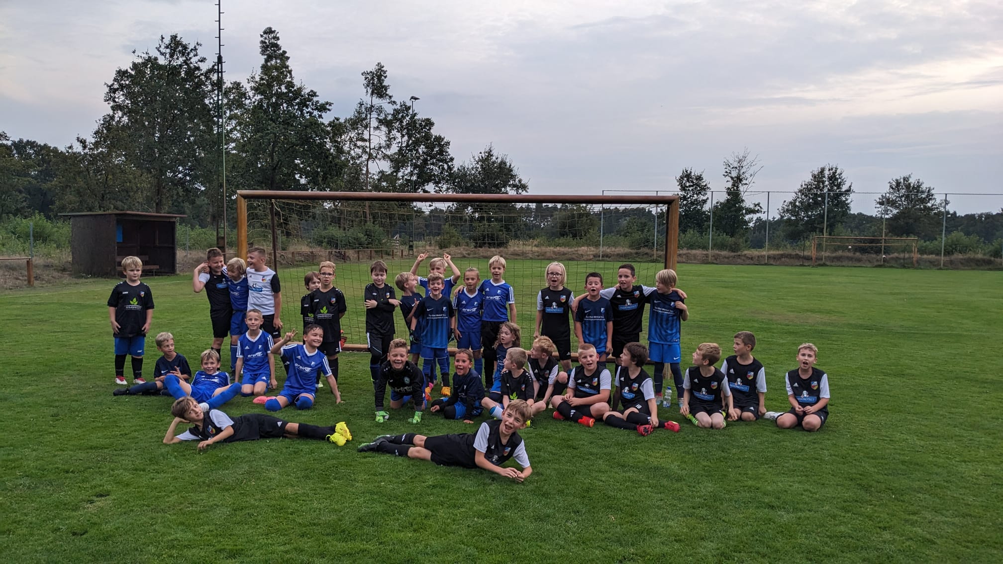 Zum Abschluss ging es für alle noch zum direkten Duell aufs 11er Feld - bei der Abschlussrunde auf dem "großen Platz" trennten sich die Mannschaften 1:1 unentschieden. Da Trainer und Kinder sich kennen standen Spaß und gute Laune im Vordergrund, was den Abend von 17-19 Uhr wie im Flug vergehen ließ.
