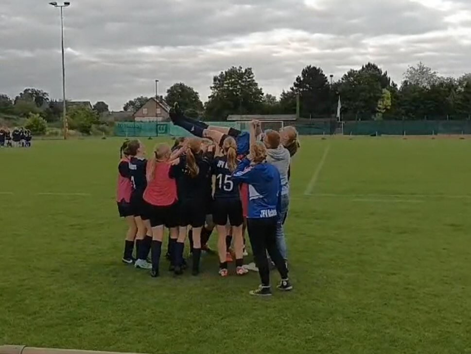 Satte 13 Tore gab es für die zahlreichen Zuschauer im letzten Heimspiel zu sehen. Besonderer Höhepunkt: Emily schoss (als Mittelstürmer aufgeboten) in ihrem letzten Spiel für die Kickers kurz nach der Halbzeit ein Traumtor und Kimberley traf souverän per Foulelfmeter. Auch ein Dankeschön an diese tollen Meister-Trikots von unserem Sponsor Jan Christian Ramme.