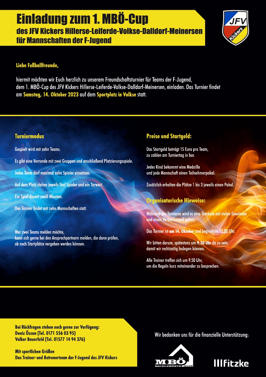 Am Samstag, 14.10.23 findet auf dem Sportplatz der SV Volkse-Dalldorf der 1. MBÖ Cup der F-Junioren statt.