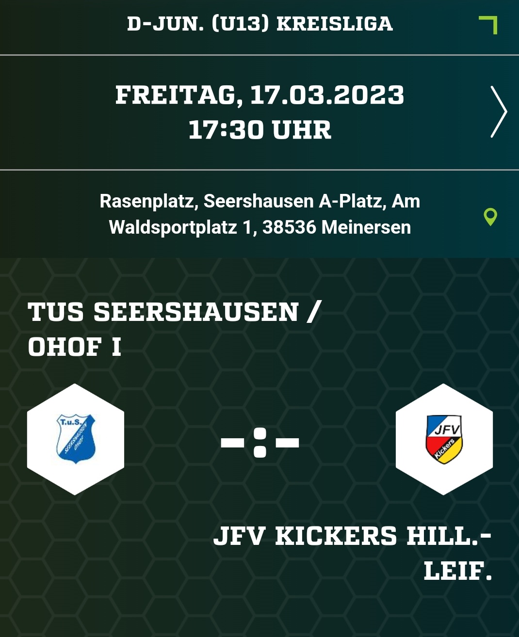 | JFV Kickers - TuS Seershausen/Ohof | 1:2 |